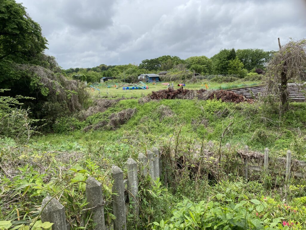 土塁のなごりか、隅に盛り上がったところがありました。
