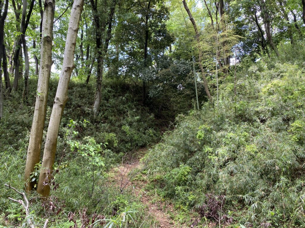 本丸と二の丸は、空堀で区切られています。年月が経ってだいぶ埋まっていますが、しっかり残っています。