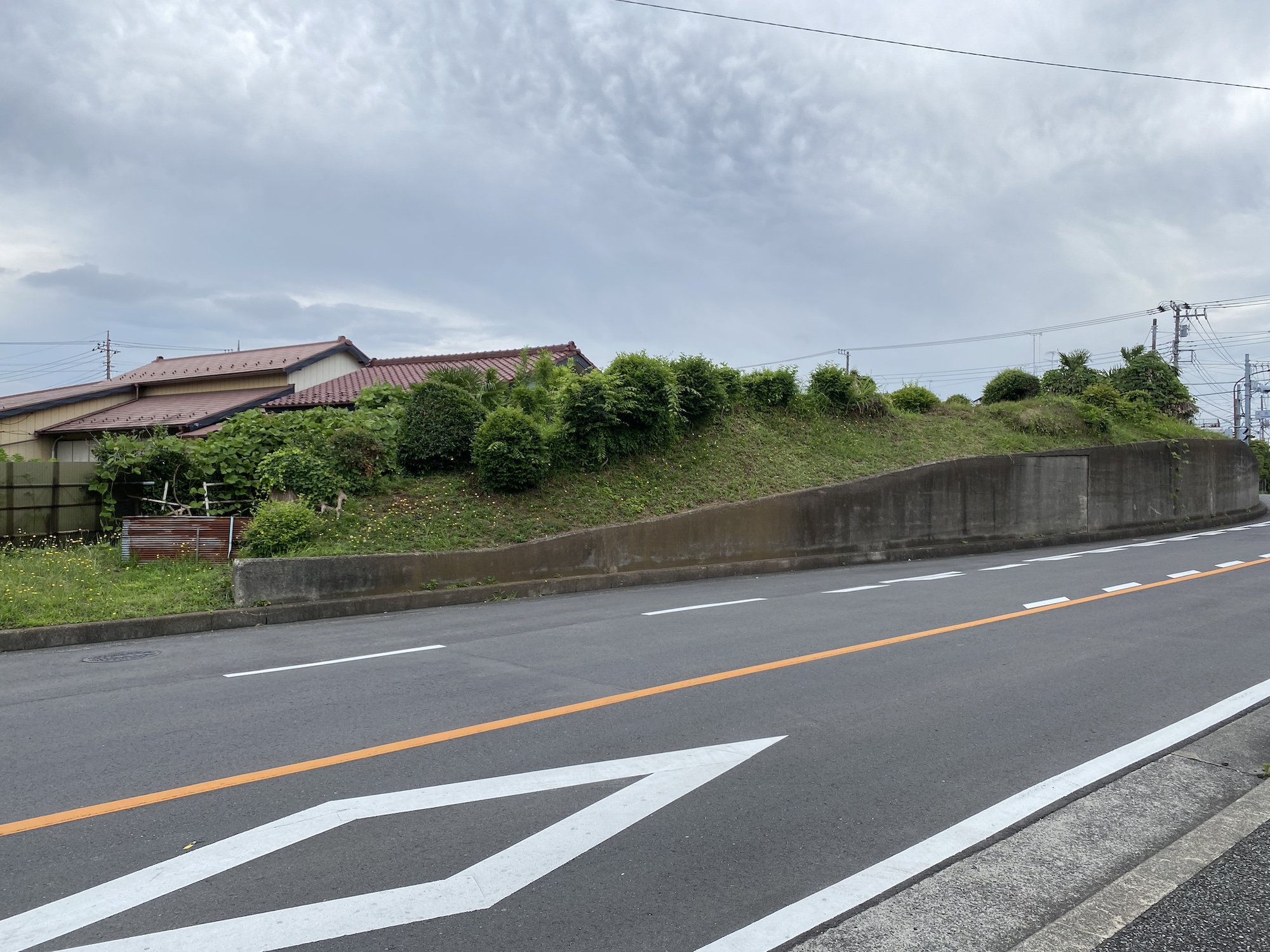 土塁は、相模原市道淵野辺境橋線沿いにあり、道路側はコンクリートで固められています。南側には「上矢部の土塁」と表示された説明板があります。市道側が居館があった内側と考えられていて、土塁の外側は箱薬研形(はこやげんがた)の堀があったことが発掘調査で明らかになったと、相模原市教育委員会が設置した説明板にあります。