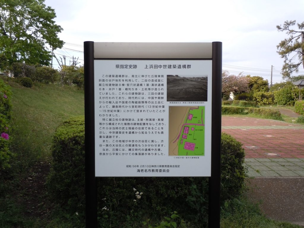 上浜田中世建築遺構群は、鎌倉時代から室町時代(13世紀中葉〜15世紀中葉)にかけての建築遺構群で、現在、浜田歴史公園内に、武士階級の住居と考えられる建物の跡が示されています。