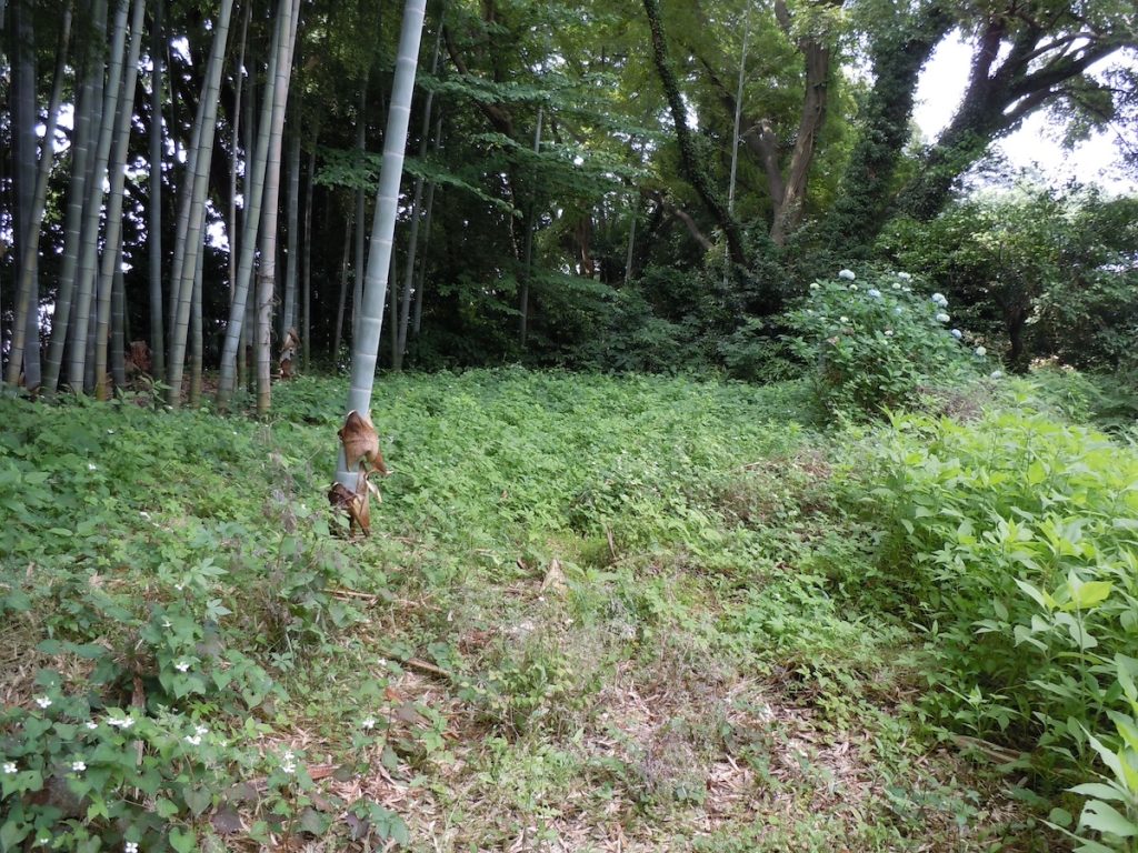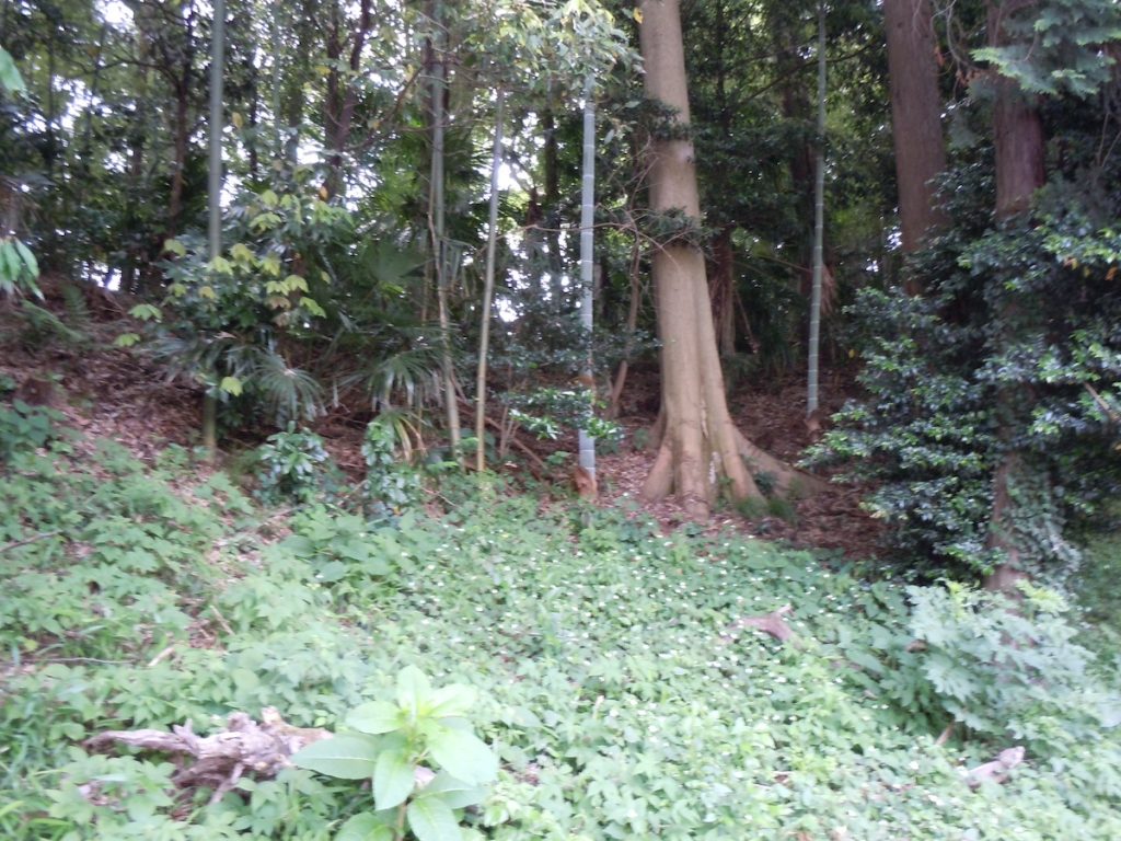 主郭の南側、一段低くなっているところが第三郭です。こちらは私有地ということで、立ち入ることはできません。