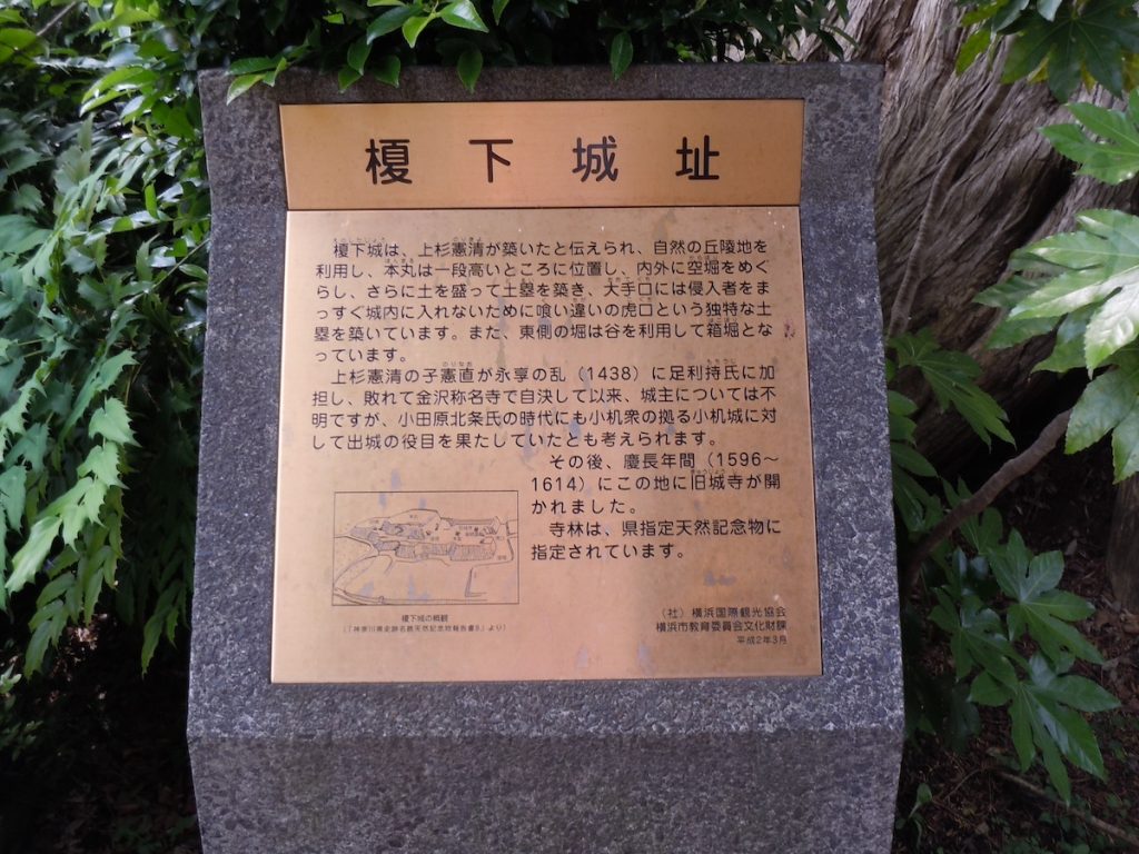 榎下城は、住宅地の中にあるお寺の中にあり、訪問しやすい城です。堀や土塁なども見ることができます。