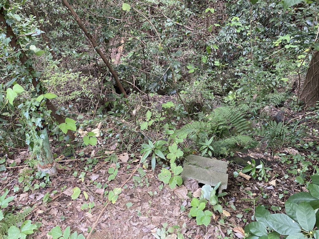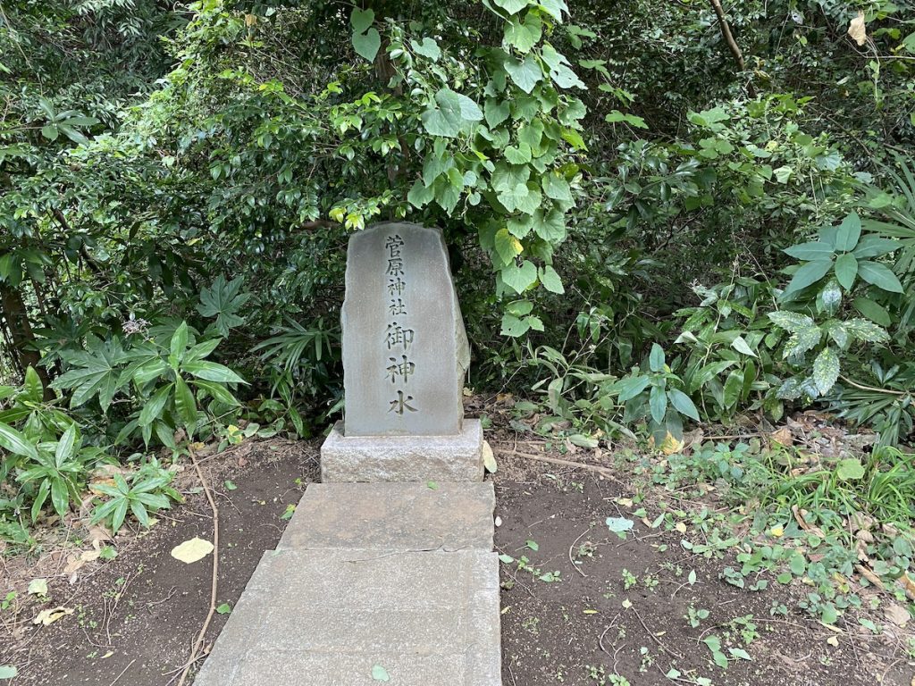 向かって左手に、「御神水」の碑があり、その裏手が沢のようになっています。これが「井手の沢」という地名と関わりがあるのでしょうか。